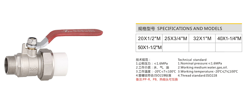 產(chǎn)品名稱:PP-R外絲活接球閥   產(chǎn)品型號(hào):CL0014     查看次數(shù):832